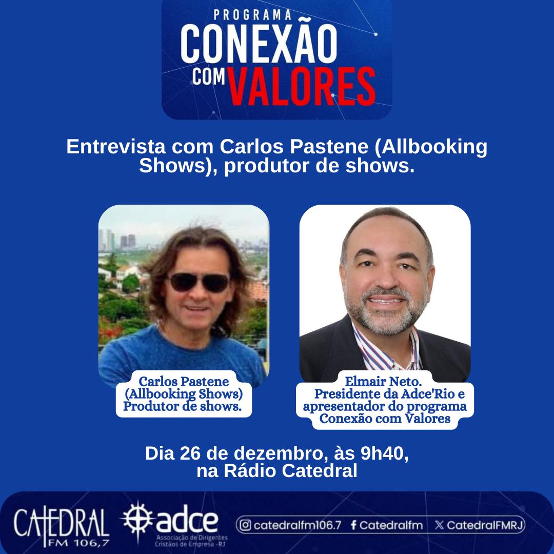 Produtor Executivo da banda chilena Black Dog The Led-Zeppelin Experience,  que fará apresentação única no dia 24 de setembro, no Teatro Clara Nunes,  o empresário Carlos Pastene,  é um dos convidados de Elmair Neto,  presidente da Uniapac Adce’Rio,  para o Programa Conexão com Valores, no dia 26 de setembro, na Rádio Catedral.
