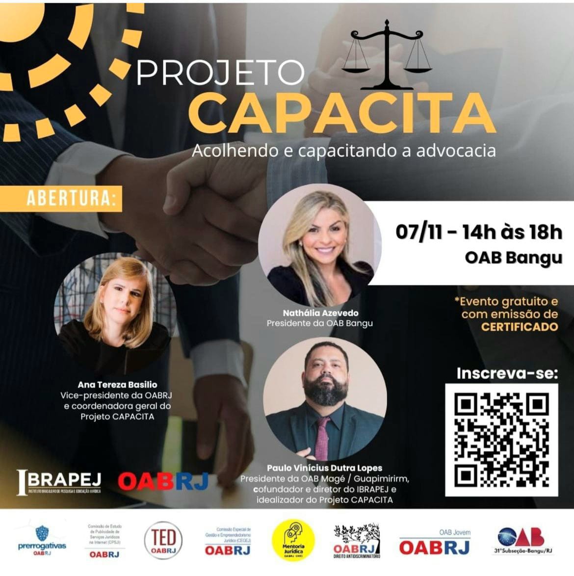 Também estarão no encontro presencial, a presidente da OAB de Bangú, Nathalia Azevedo, e o presidente da OAB de Magé, Vinicius Dutra Lopes.