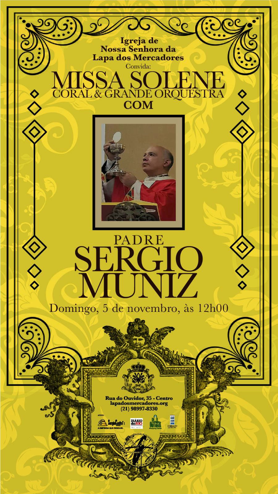 No domingo, também às 12h, com a apresentação de coral e grande orquestra, o padre Sergio Muniz vai celebrar missa solene , em Latim.