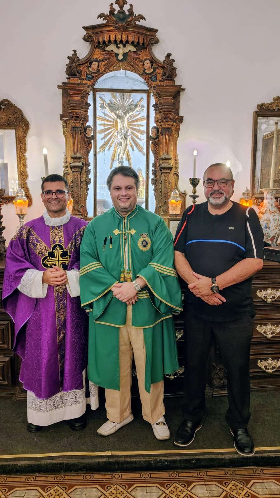 O provedor da Irmandade de Nossa Senhora da Lapa dos Mercadores, Claudio André Castro, participou da cerimônia e recebeu alguns amigos, depois da missa.