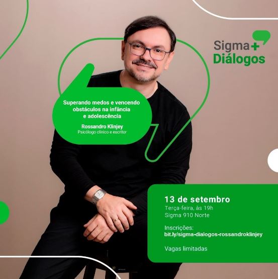 O medo do fracasso, o que ele significa e como superá-lo serão os temas abordados na 3ª edição presencial do Sigma+Diálogos. Para debater o assunto, o Colégio Sigma recebe, pela segunda vez, o professor e psicólogo, Rossandro Klinjey, no dia 13 de setembro, terça-feira, às 19h, na unidade 910 Norte (SGAN 910 Módulo E). Com a palestra “Superando medo e vencendo obstáculos na infância e na adolescência”, o palestrante irá falar sobre como ajudar os jovens a desfrutarem o sucesso na vida e aproveitarem as oportunidades que aparecem ao longo da vida escolar e pessoal.