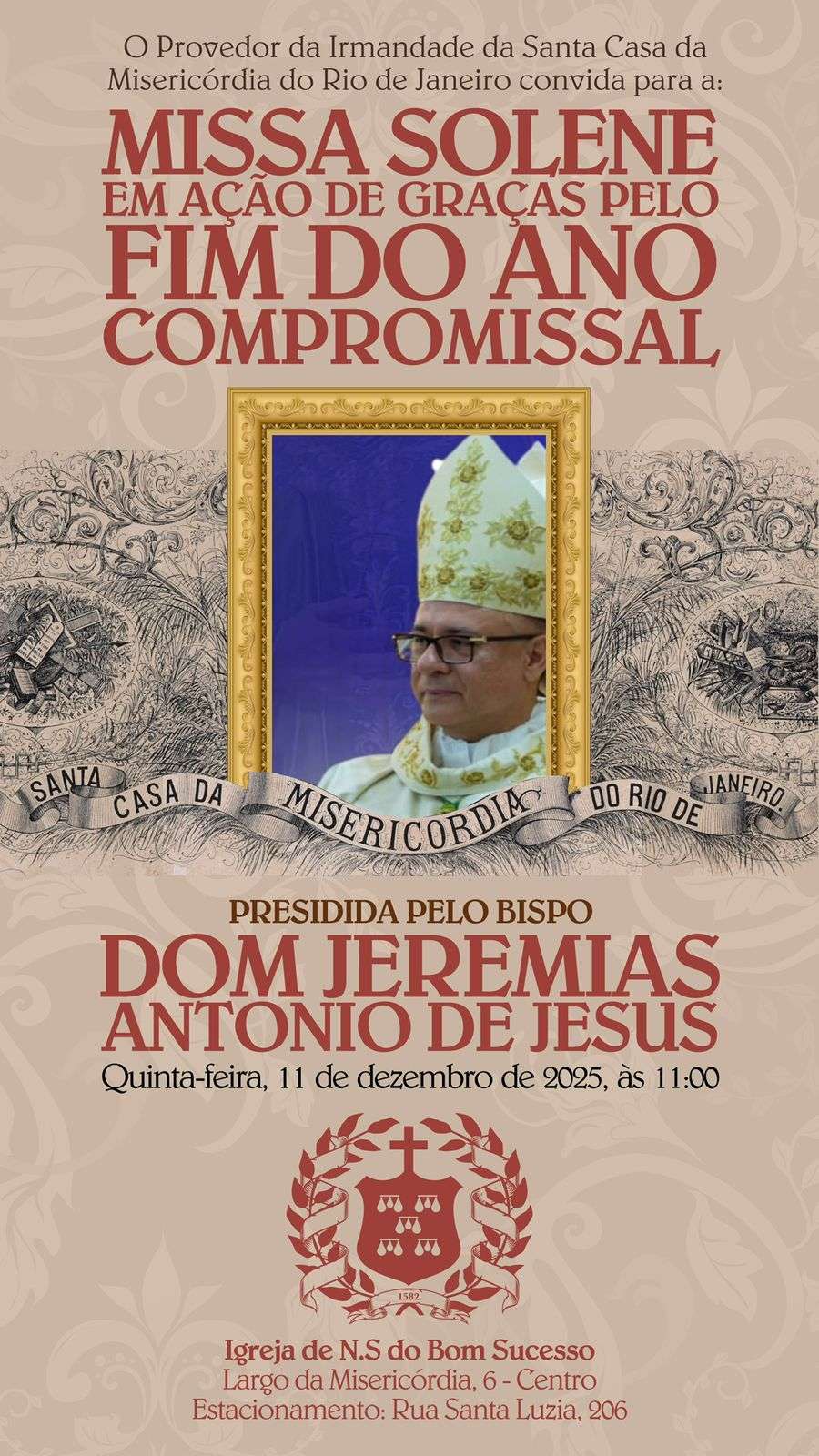 Santa Casa convida para Missa Solene, em Ação de Graças pelo fim do ano compromissal da Irmandade Rio de janeiro