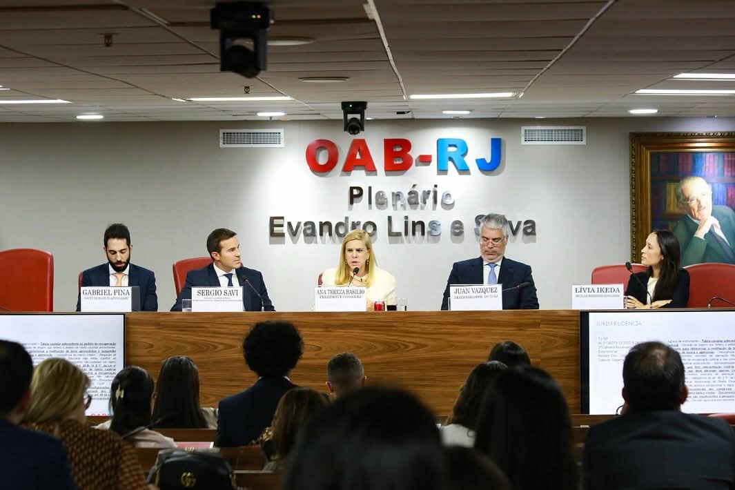 Presidente da OAB-RJ,  Ana Tereza Basílio participou do Seminário sobre Recuperação de Empresas,  no Plenário Evandro Lins e Silva, na sede da seccional, e das palestras do painel “Medidas Antecedentes à Reestruturação: Tutelas e Mediações”.