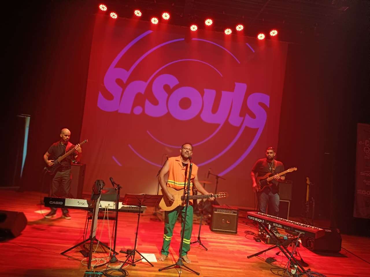 O Sesc Centro Goiânia recebeu, no dia 26 de março, um show marcante da banda Sr. Souls, que transformou o palco em um espaço potente de arte, inclusão e reconhecimento social. A apresentação gratuita, realizada pelo projeto Claque Cultural, reuniu música autoral, poesia e discurso engajado, emocionando o público presente.Um dos momentos mais simbólicos da noite foi protagonizado pelo vocalista Silvio Soũls, que se apresentou durante todo o espetáculo vestindo o uniforme de gari. O gesto foi uma homenagem direta aos garis e aos trabalhadores de limpeza de Goiânia, em referência ao Dia do Gari, celebrado em 20 de março.