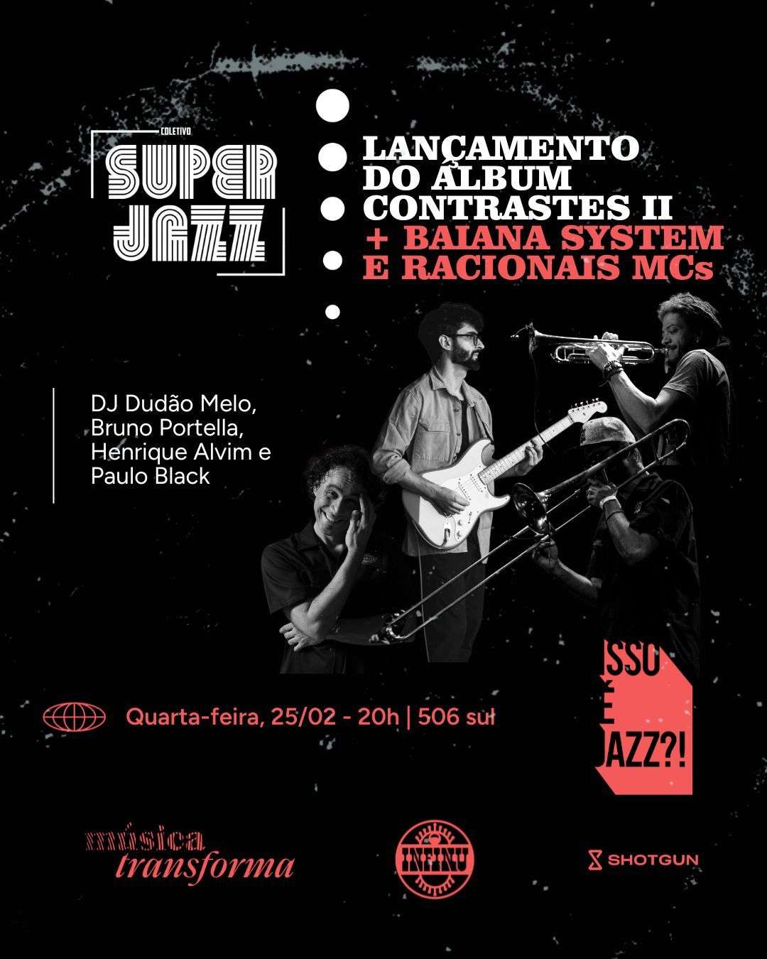 Brasília recebe, na quarta-feira, 25 de fevereiro, uma noite especial de celebração da música instrumental contemporânea com o lançamento do álbum Contrastes II, novo trabalho do Coletivo Superjazz. O show acontece às 20h, no Infinu 506 Sul, e traz como um de seus principais destaques a execução ao vivo de “Jahzz Revolta”, composição do coletivo que integra o novo álbum do BaianaSystem.