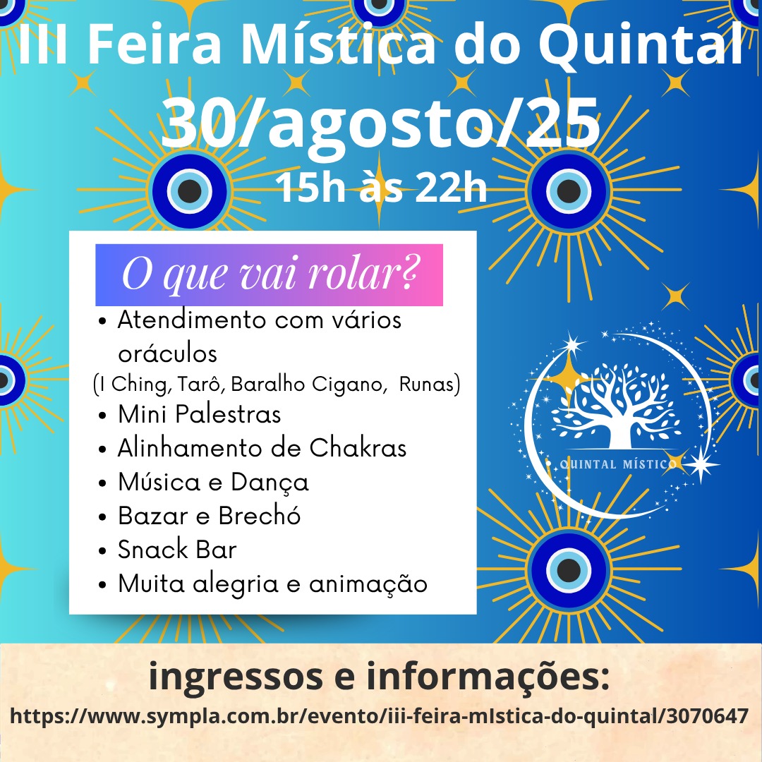 Em sua terceira versão a *Feira Mística do Quintal* mantém a proposta de promover uma oportunidade de conexão com o mundo da espiritualidade, autoconhecimento e misticismo!