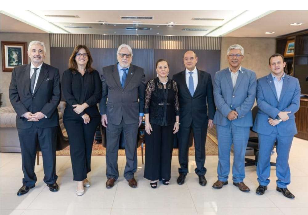 Na foto, da esquerda para a direita, o desembargador Gabriel Zéfiro, a juiza auxiliar da presidência do TJRJ, Paula Soares, o presidente da Jucerja, Sérgio Romay, a desembargadora Suely Magalhães, o presidente do TJRJ, Ricardo Couto, e os assessores da presidência da Jucerja, William Rocha e Felipe Goloni.