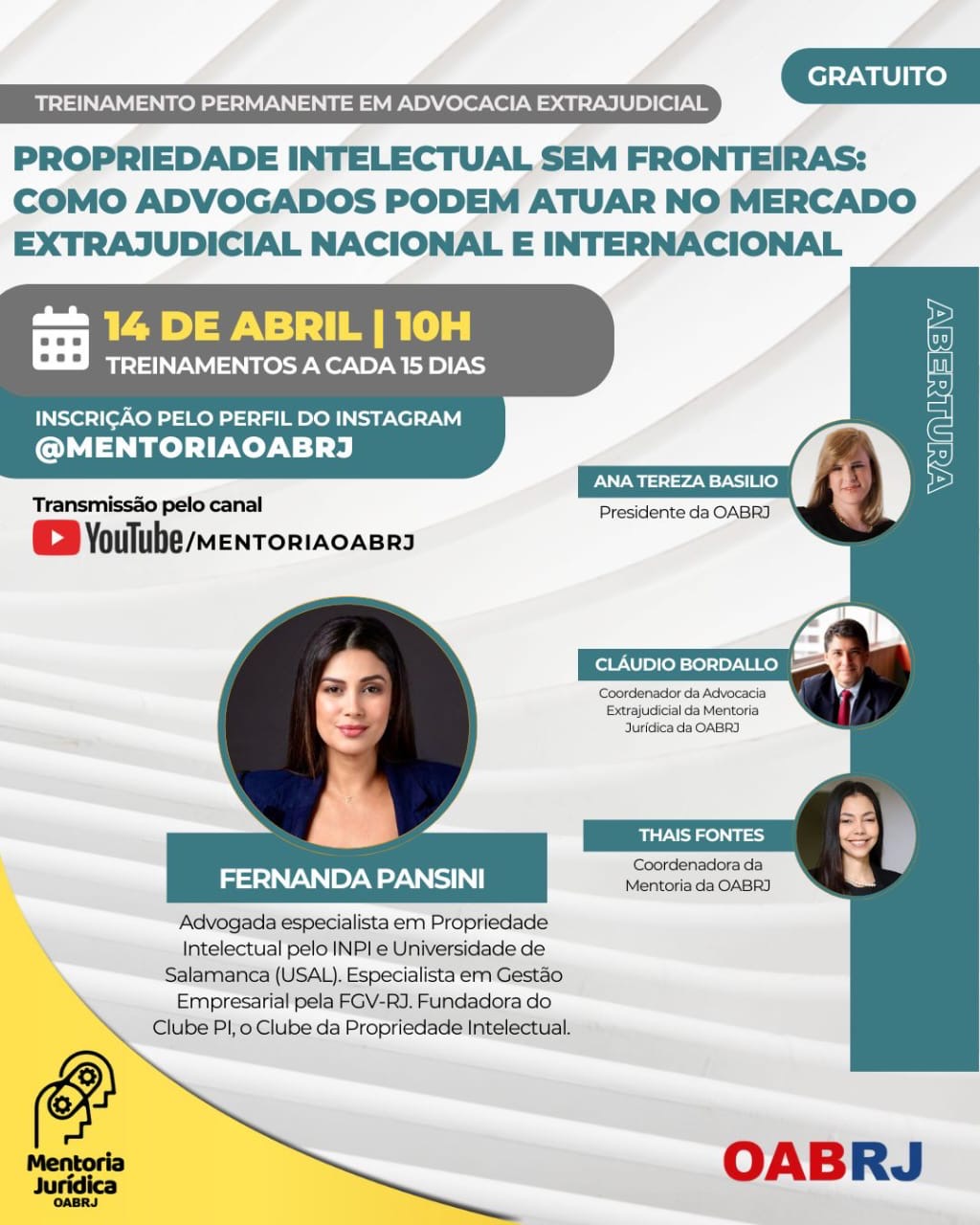 Também estarão no encontro virtual e gratuito, a Coordenadora da Mentoria da OAB-RJ, Thais Fontes o Coordenador da Advocacia Extrajudicial da Mentoria Jurídica, Claudio Bordallo, e a advogada Fernanda Pansini.