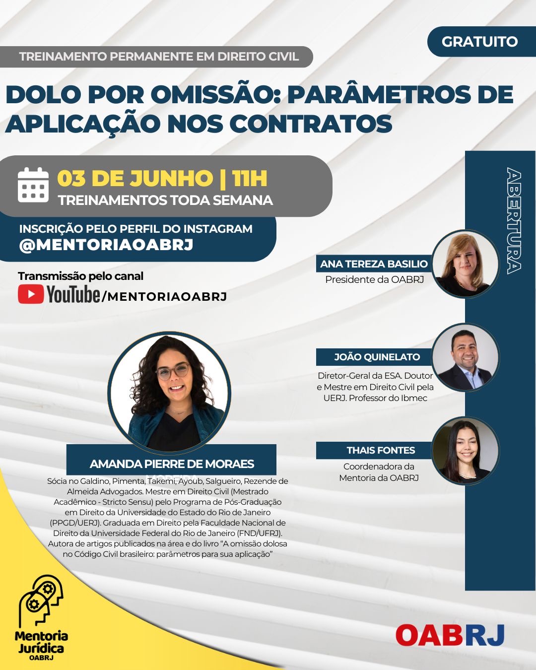 Também estarão no encontro virtual e gratuito, a Coordenadora da Mentoria da OAB-RJ, Thais Fontes, o Diretor-geral da ESA-RJ, João Quinelato, e a advogada Amanda Pierre de Moraes.