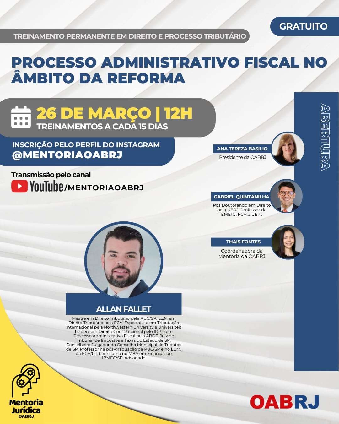 Também estarão no encontro virtual e gratuito, a Coordenadora da Mentoria da OAB-RJ, Thais Fontes, e os advogados Gabriel Quintanilha e Allan Fallet.