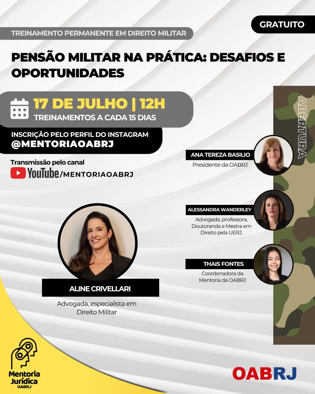Também estarão no encontro virtual e gratuito, a Coordenadora da Mentoria da OAB-RJ, Thais Fontes, a advogada Alessandra Wanderley e a advogada Aline Crivellari.