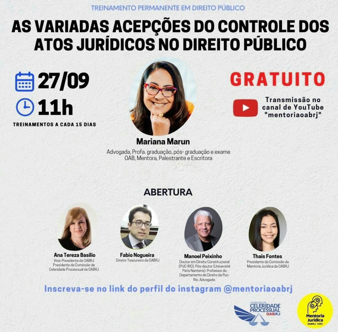 Também vão participar do evento virtual,  os advogados Mariana Marum e Manoel Peixinho,  o Diretor Tesoureiro da OAB-RJ,  Fabio Nogueira, e a presidente da comissão de Mentoria Jurídica,  Thais Fontes.