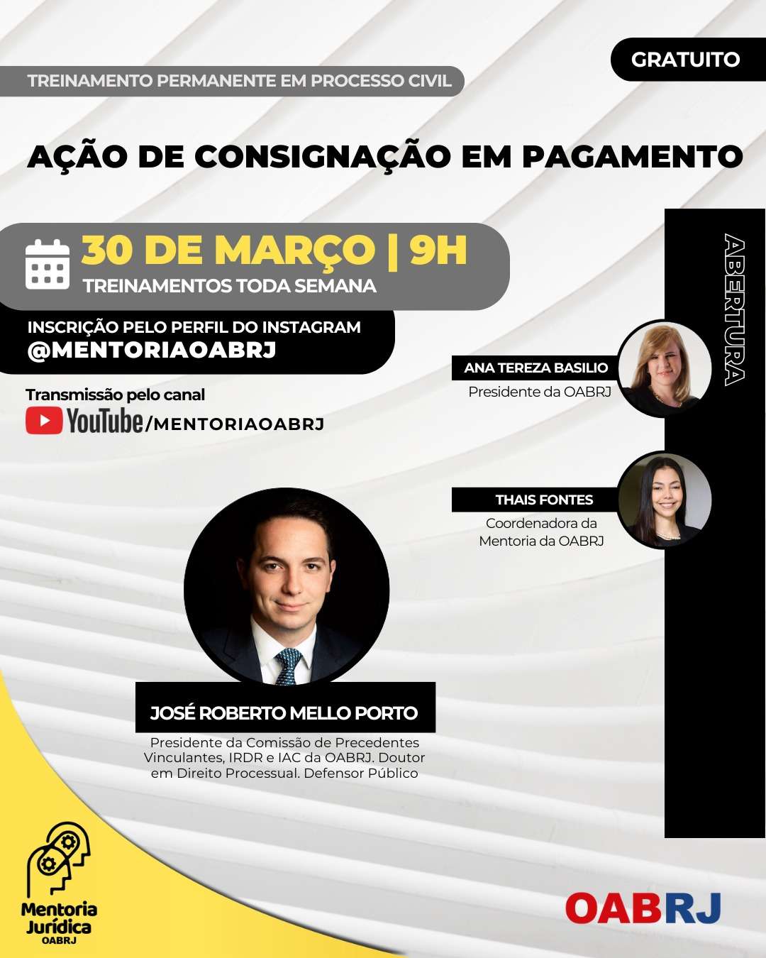 Também estarão no encontro virtual e gratuito, a Coordenadora da Mentoria da OAB-RJ, Thais Fontes, e o presidente da comissão de Precedentes Vinculantes, IRDR e IAC,  José Roberto Mello Porto.