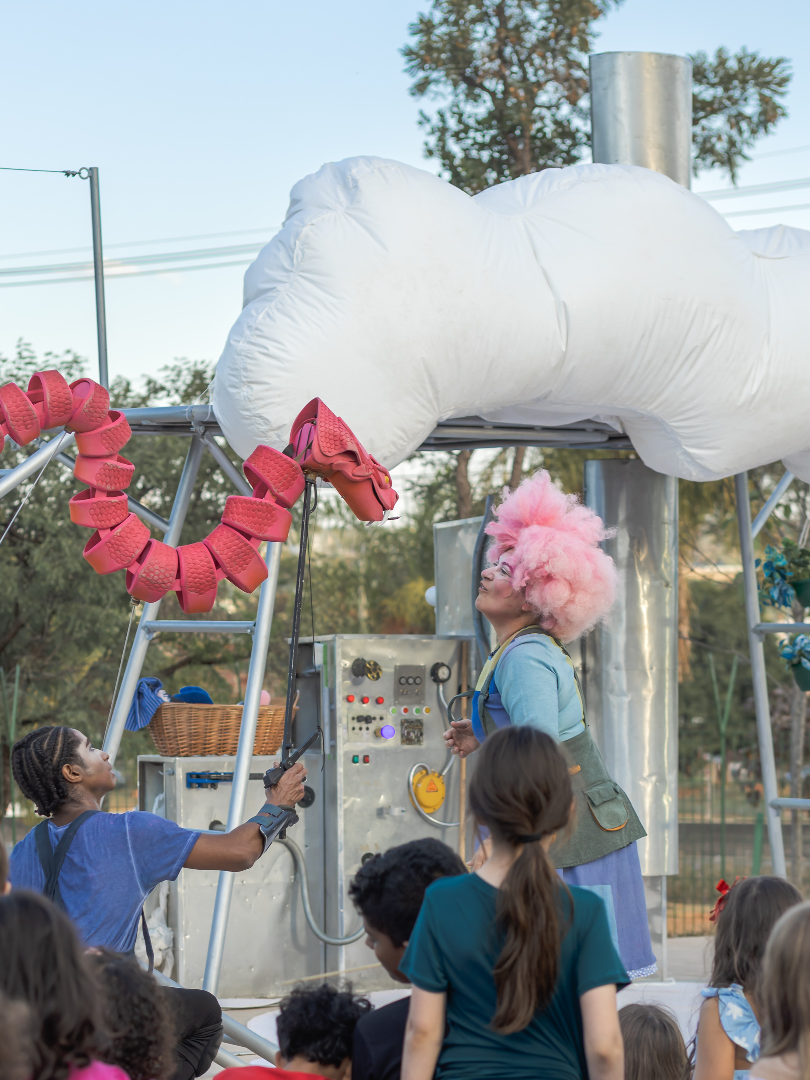 O Centro Cultural Banco do Brasil Brasília recebe o espetáculo infantojuvenil Fábrica de Nuvem até o próximo domingo, 10 de agosto. O projeto vem encantando os brasilienses de todas as idades ao unir arte circense, teatro físico, bonecos e palhaçaria para tratar, com delicadeza e poesia, sobre as mudanças climáticas.