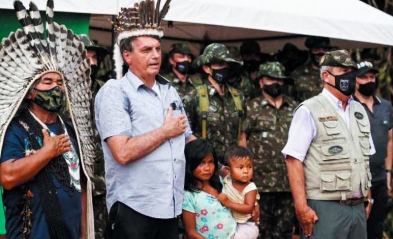 Após as reportagens denúncias do Fantástico na Rede Globo, sobre garimpo e mineração ilegal na Amazônia, Bolsonaro vai até o território Ianomâmi em Roraima e parte do Estado do Amazonas e fala sobre amizade com povos indígenas. Bolsonaro cantou o hino nacional cercado de indígenas e prometeu proteção física aos povos indígenas da região.
