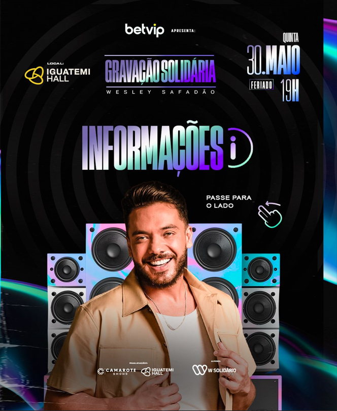 A “Gravação Solidária”, acontece no Iguatemi Hall, nova casa de show localizada no estacionamento do Shopping Iguatemi, em Fortaleza, e arrecadará doações destinadas as vítimas da catástrofe ambiental do Rio Grande do Sul.